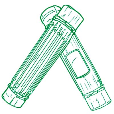 O lakadou é feito de um pedaço de bambu cortado de nó a nó. Estes variam em tamanho com a média de cerca de 10 cm de diâmetro e 45 cm de comprimento. Na parte de trás do lakadou está esculpido um orifício retangular que ajuda a amplificar o som. Uma das extremidades do tubo do lakadou é aberta e a outra fechada pelos nós naturais do bambu, com um pequeno orifício no centro.